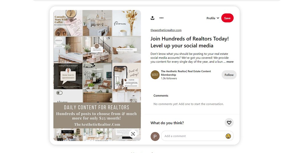 Advertising on Pinterest can influence the sale of your real estate business. Creating a Pinterest board with captivating images of various properties. You can include the features, area, close by landmarks and other amenities. Interact with the audience by responding to their comments, this will build trust with potential buyers.